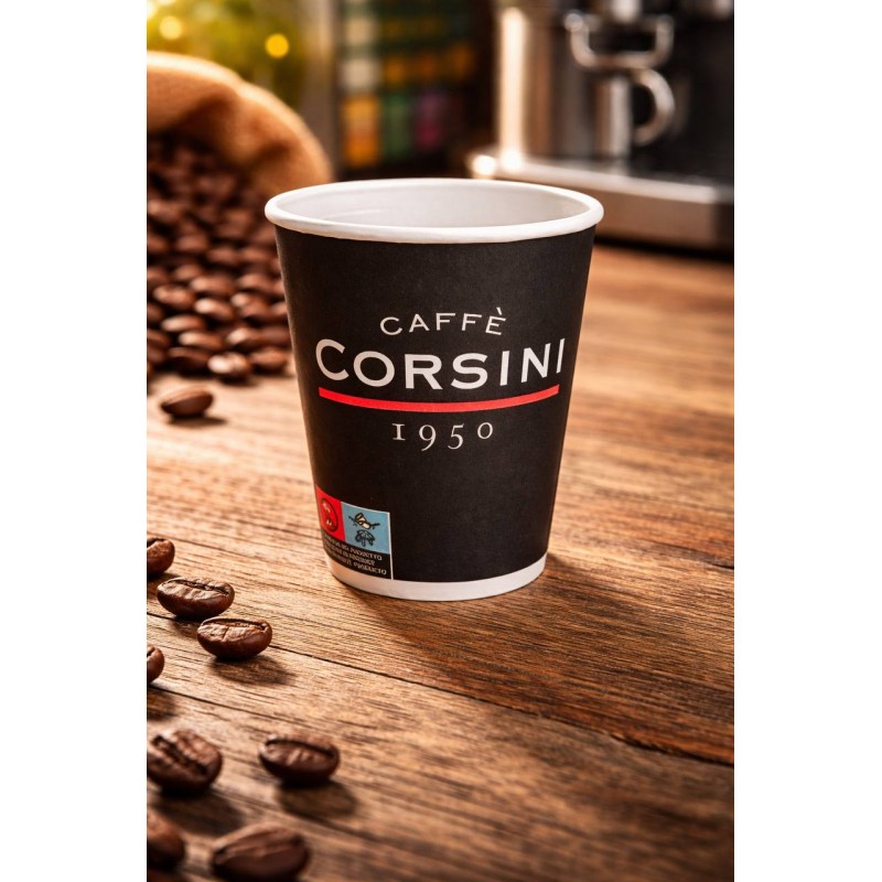 Designul elegant cu logo-ul Caffè Corsini oferă un aspect profesional și atractiv, contribuind la o prezentare modernă a băuturilor. Cu un volum de 380 ml, paharele sunt perfecte pentru cappuccino, latte, americano și alte băuturi populare.