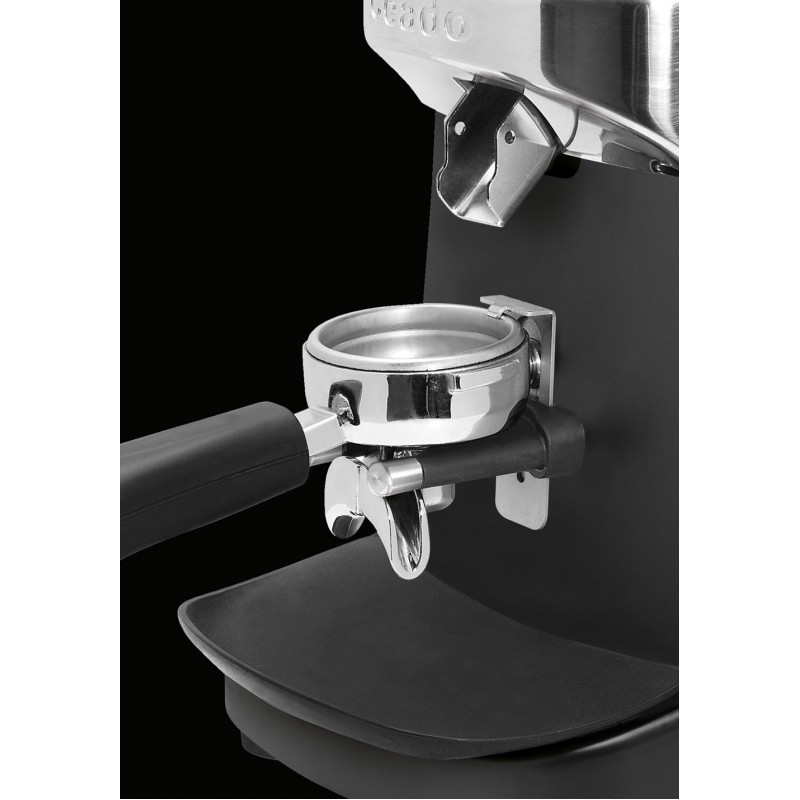 Râșnița CEADO E37R dispune de display touchscreen modern și sistem de setare digitală a dozei, care permite atât porții presetate, cât și dozare liberă. Funcția hands-free cu fixator portafiltru permite măcinarea direct în portafiltru fără a-l ține manual, accelerând semnificativ fluxul de lucru al barista.